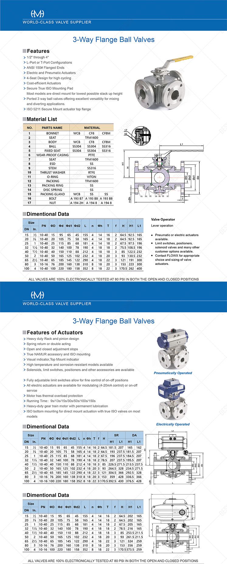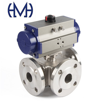 Automated Pneumatic Stainless steel 3way Flanged Ball Valve
